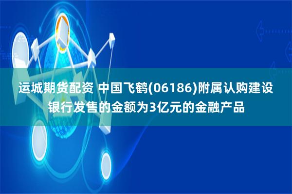 运城期货配资 中国飞鹤(06186)附属认购建设银行发售的金额为3亿元的金融产品