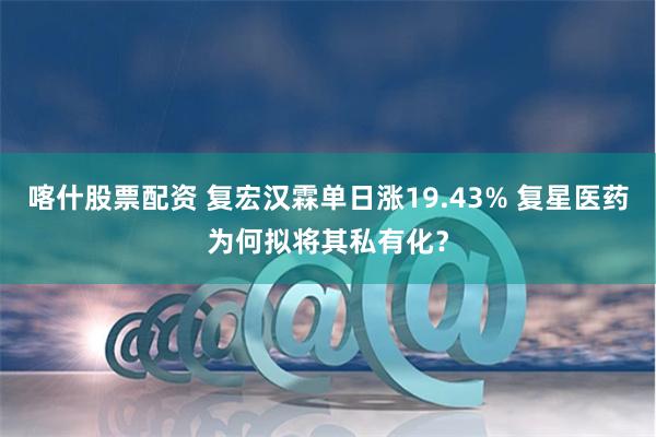 喀什股票配资 复宏汉霖单日涨19.43% 复星医药为何拟将其私有化?